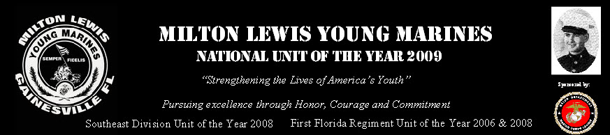 We are the Milton Lewis Young Marines, Gainesville Florida. If you are new to us, read about the program below. Follow the links on this page for more information about the unit and our activities.